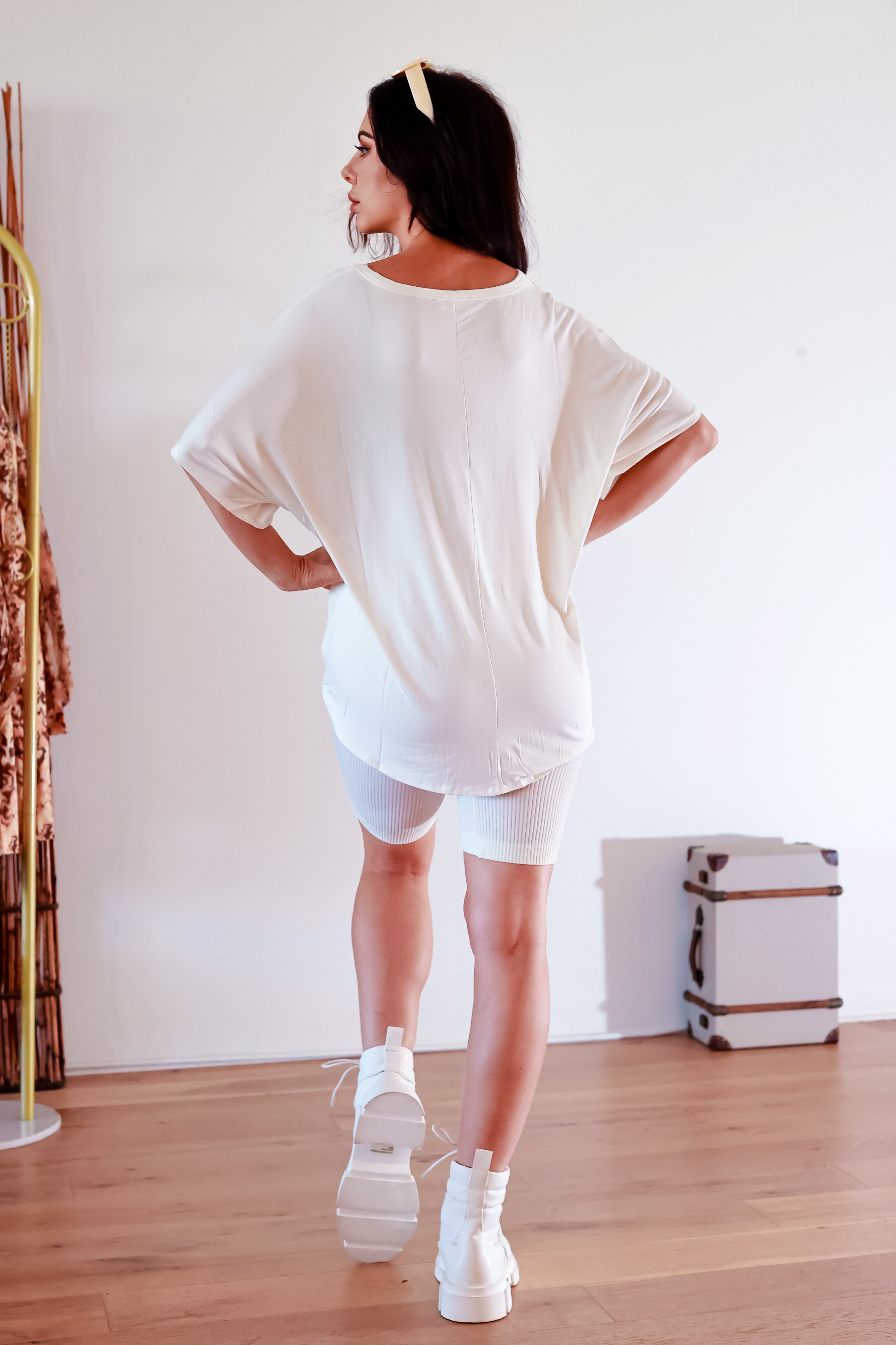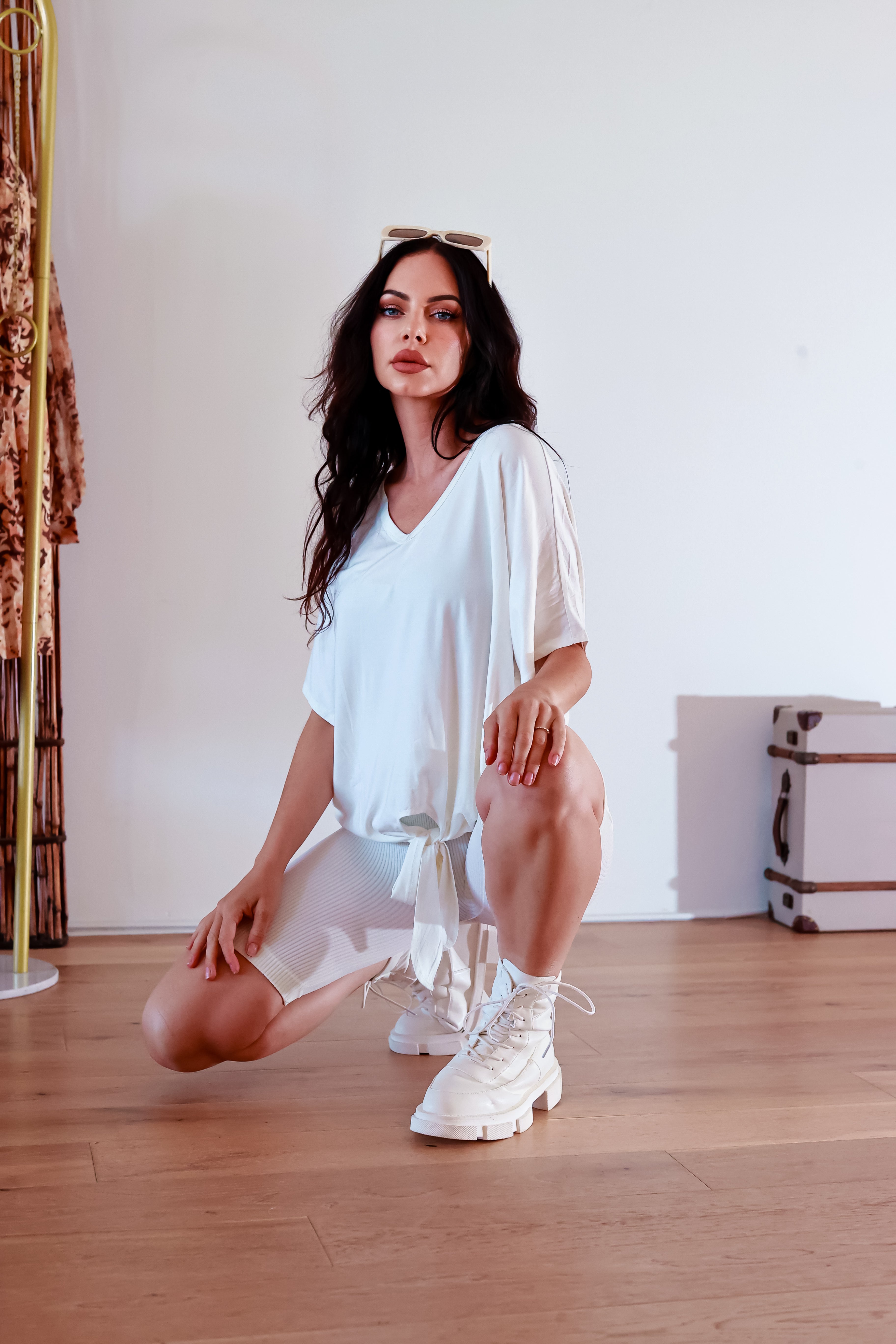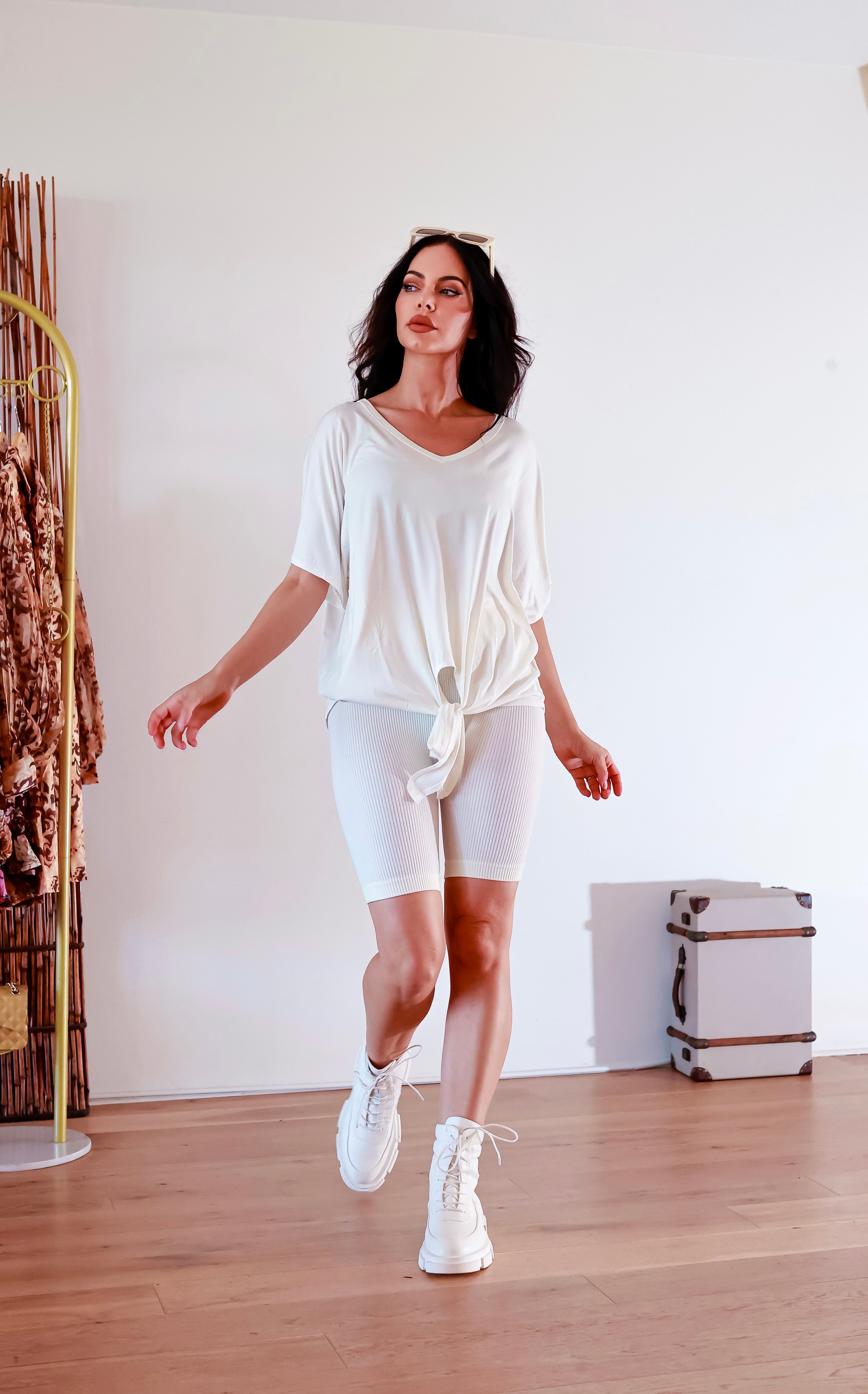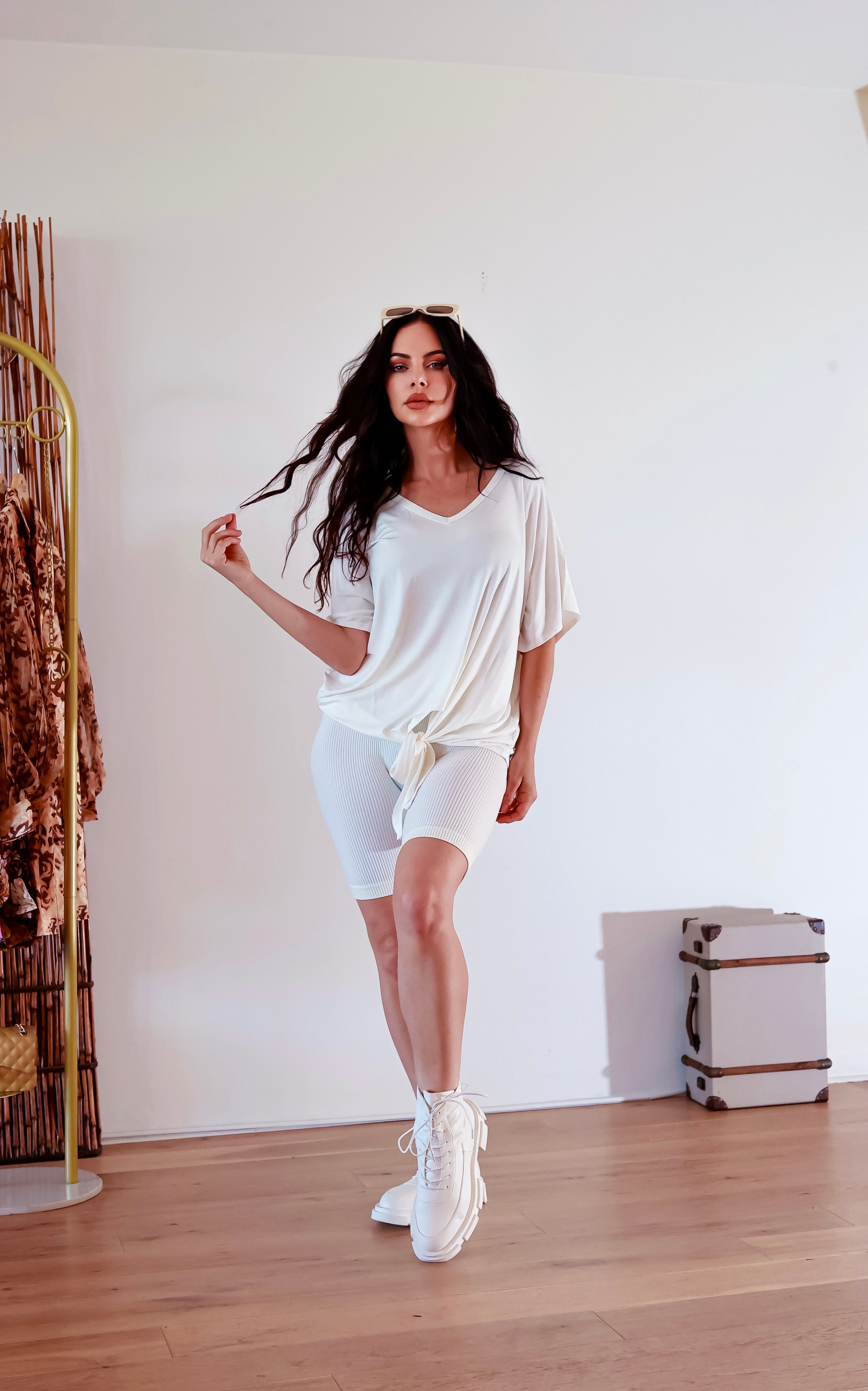 Ribbed Shorts Set: On The Go Front Tie Top in Ivory